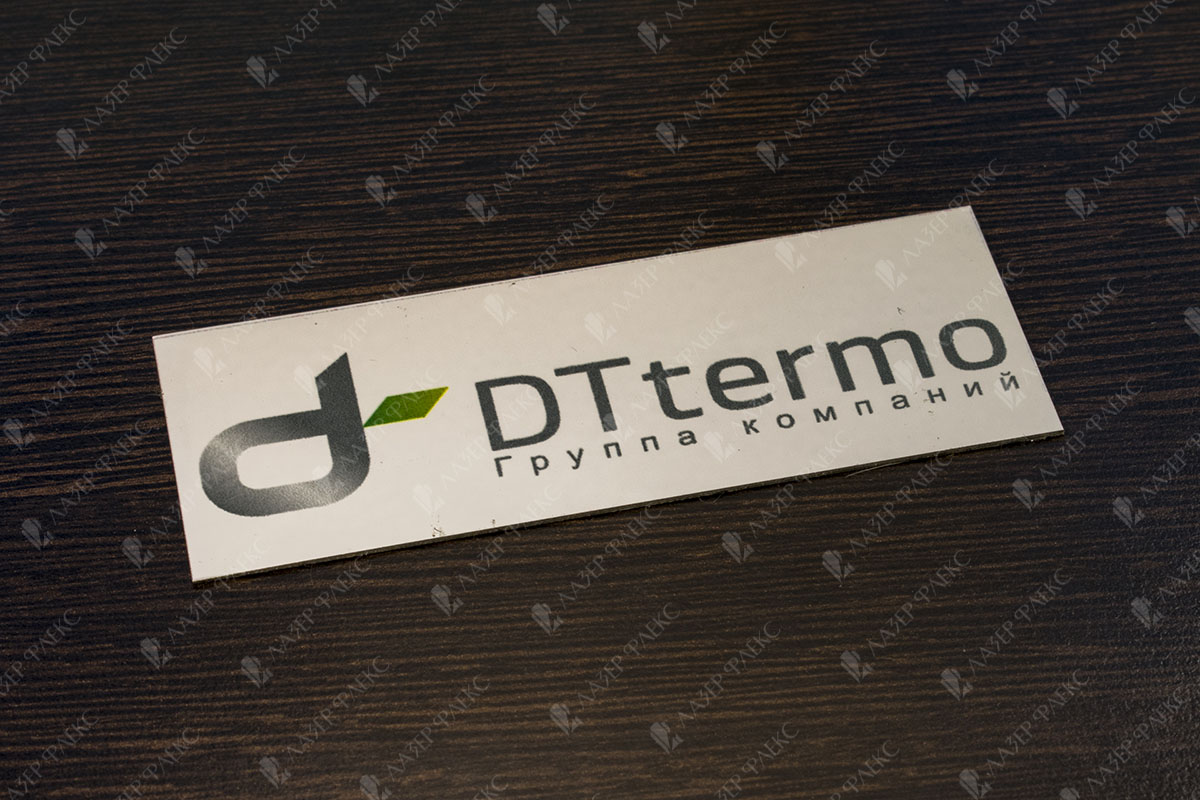 Нанесение рисунка лазером применяется на двухслойном металлизированном пластике. В этом случае после прожигания верхнего слоя под «золото», «серебро», «бронзу» изображение имеет цвет нижнего слоя (например, черного, или любого другого). Особый интерес представляет гибкость материала. Информирующие пластинки можно размещать на любой искривленной поверхности. Кроме того, гибкий пластик обладает способностью самовосстановления, например, после царапины.