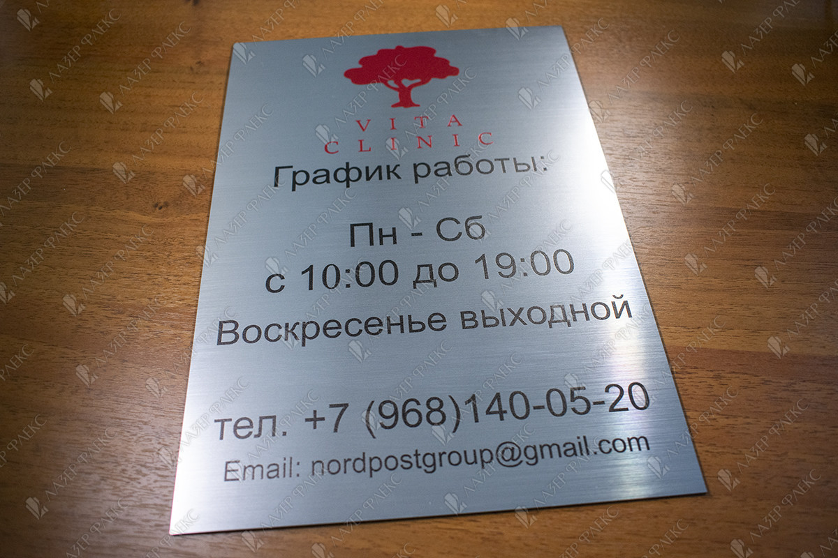 Каждая табличка может быть оснащена декоративным профилем из алюминия. Данный профиль подходит как для уличного, так и для интерьерного применения. В комплекте к профилю идут два кронштейна для удобства монтажа. В наличии имеются профиля черного, золотого и серебристого цвета в матовом и глянцевом исполнении. Более подробную информацию по наличию цветов уточняйте у наших менеджеров. Стоимость погонного метра профиля составляет 400 руб.